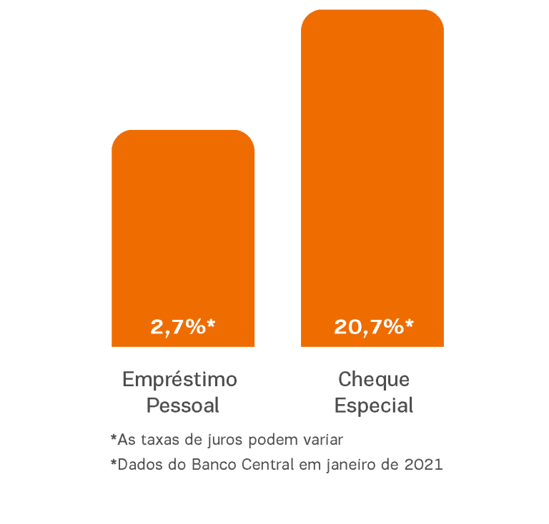Como mostra o Banco Central, ele possui as menores taxas de juros do mercado, sendo mais de 7x menor que a do cartão de crédito convencional.